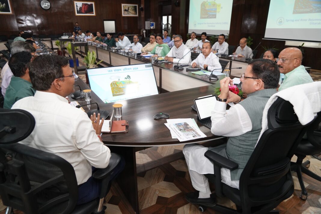 मुख्यमंत्री श्री पुष्कर सिंह धामी ने जल संरक्षण और वृक्षारोपण अभियान, 2024 के सफल क्रियान्वयन के लिए अधिकारियों को निर्देश दिये कि जल संरक्षण और जल संचय की दिशा में तेजी से कार्य किये जाए। नदियों और जल स्रोतों के पुनर्जीवीकरण के लिए प्रभावी प्रयास किये जाएं। इसके लिये सभी संबंधित विभाग समन्वय बनाकर कार्य करें। 10 से 16 जून 2024 तक प्रदेशभर में जल उत्सव सप्ताह व्यापक स्तर पर मनाया जाय। यह निर्देश मुख्यमंत्री ने बुधवार को सचिवालय में आयोजित बैठक में दिये।